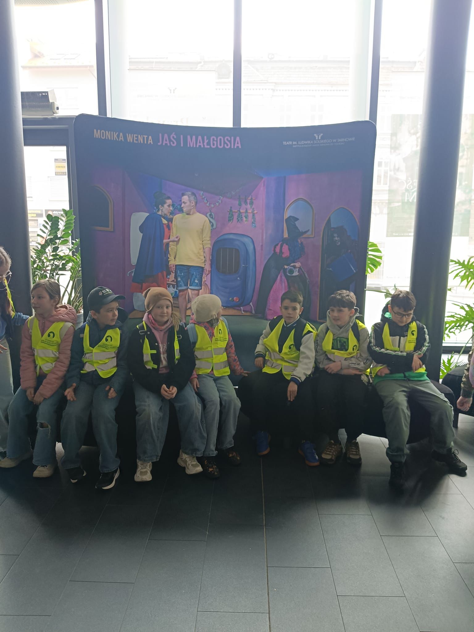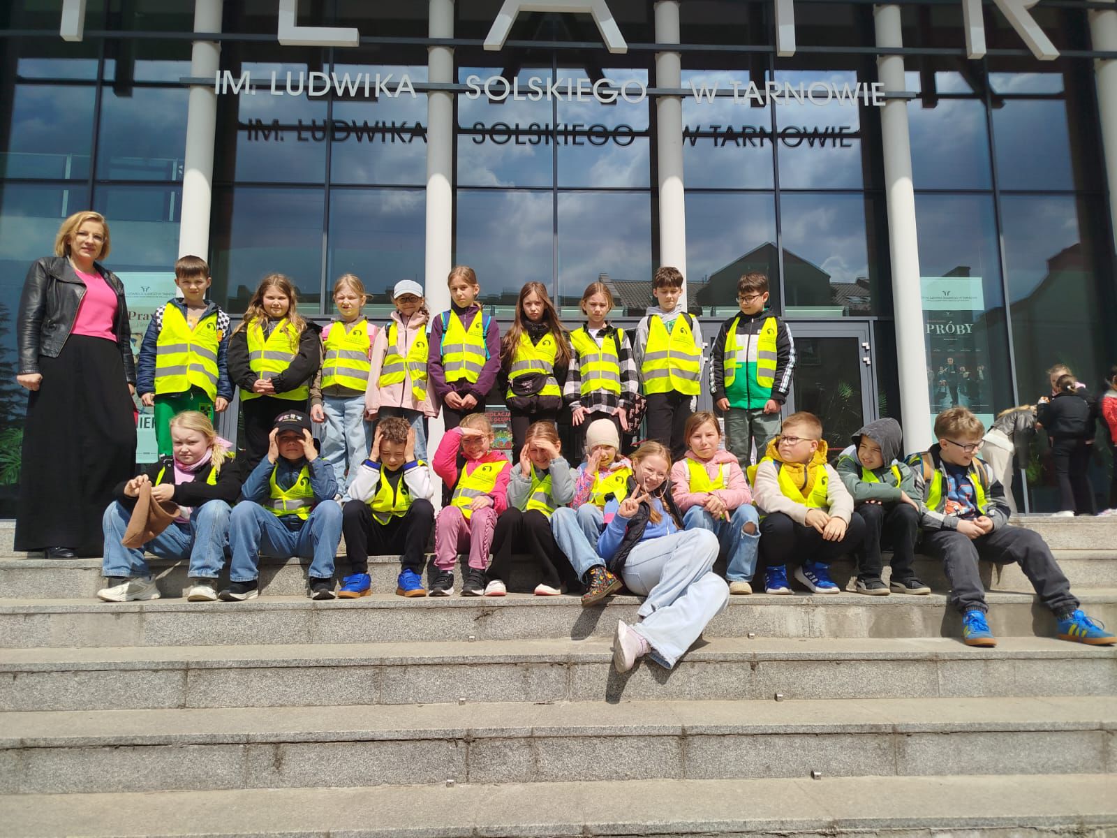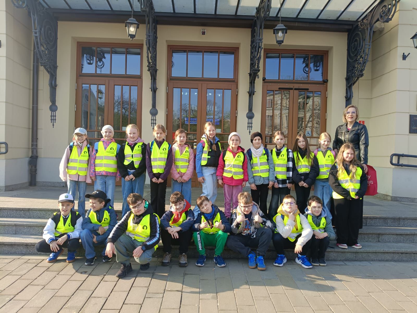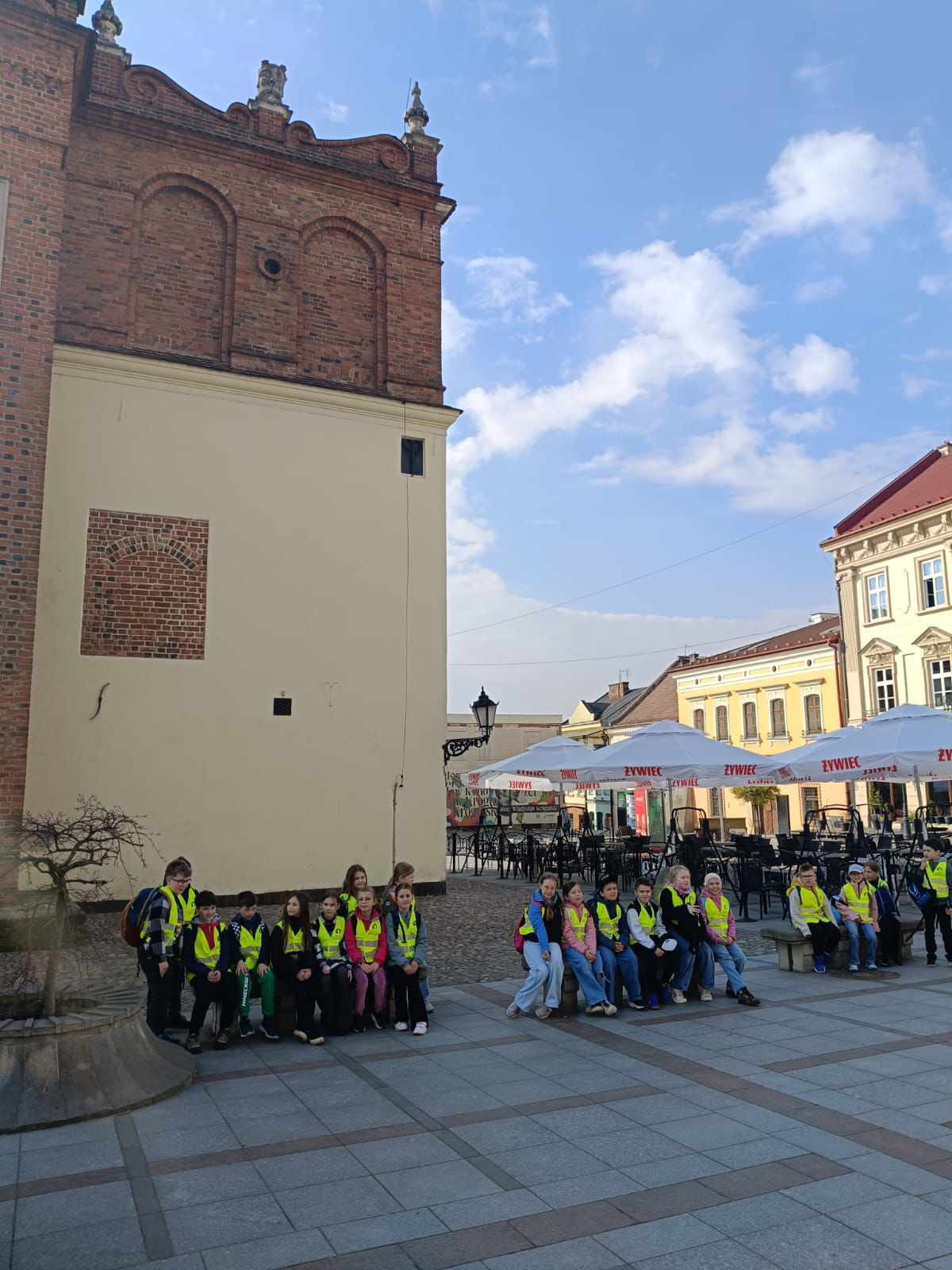 17 kwietnia 2026r. Klasa 3B wybrała się pociągiem na wycieczkę do Tarnowa. Po przyjeździe zwiedziliśmy piękny, zabytkowy Dworzec PKP, następnie udaliśmy się na spacer uliczkami Tarnowia. Po drodze wielką frajdę sprawiało nam szukanie słynnych Maszkaronów. W promieniach słońca dotarliśmy do Rynku i Ratusza. Udaliśmy się więc na wieżę, z której oglądaliśmy szeroką panoramę okolicy Tarnowa i zwiedziliśmy stałe wystawy w Muzeum. Po ciekawej lekcji historii przeszliśmy do teatru na zaplanowane przedstawienie „Przygody 10 skarpetek”. Autorzy w nowatorski sposób wcielili się w bohaterów książki, a towarzyszyła im nowoczesna muzyka. Na koniec wszyscy bili gromkie brawa. Wróciliśmy zmęczeni, ale szczęśliwi, a na stacji czekali na nas Kochani Rodzice.