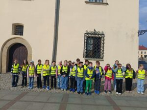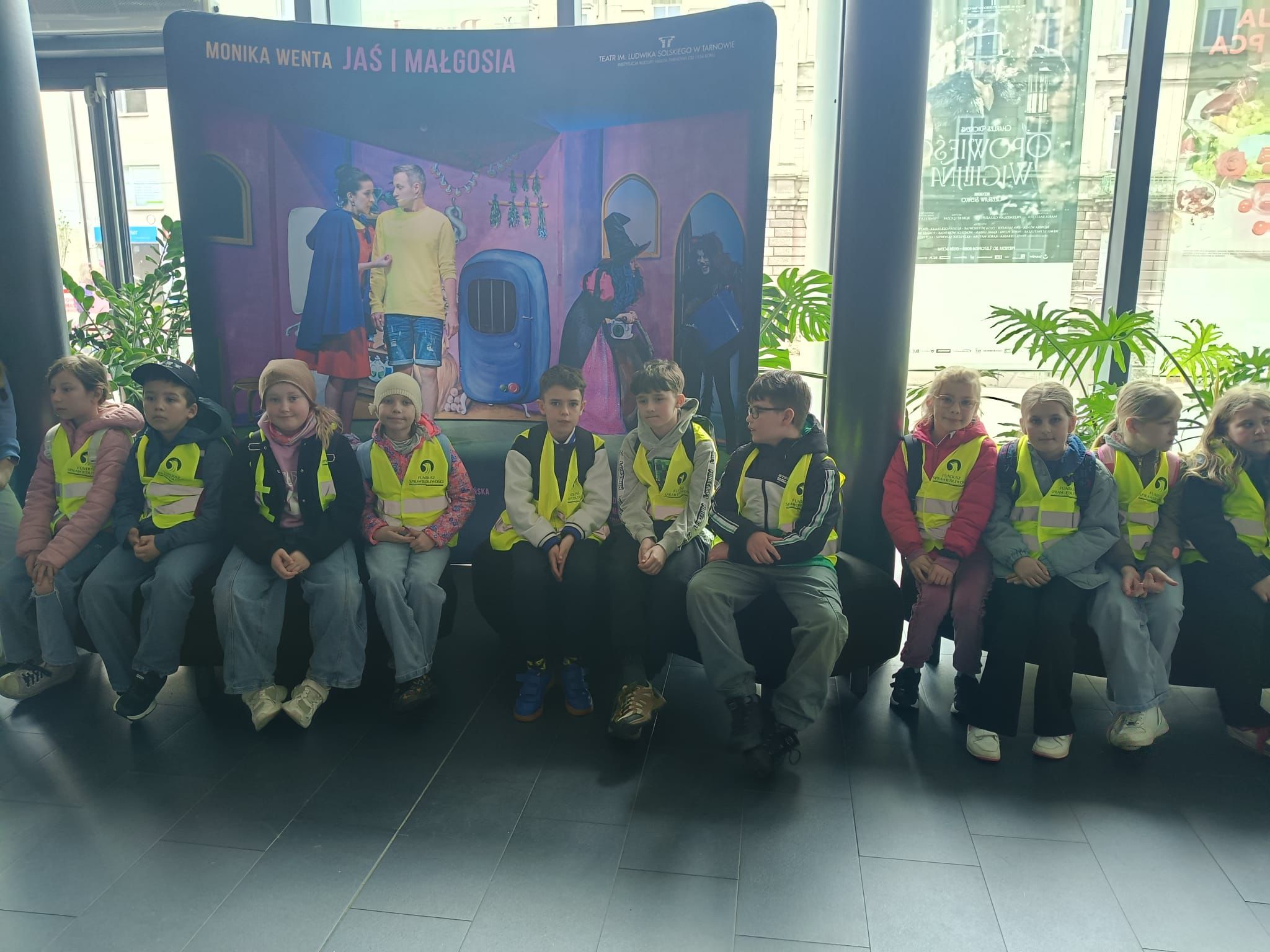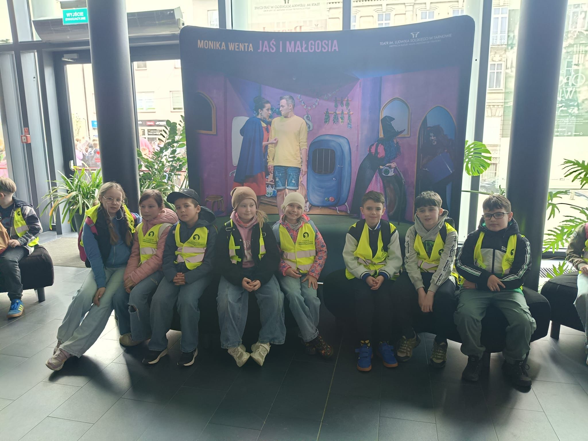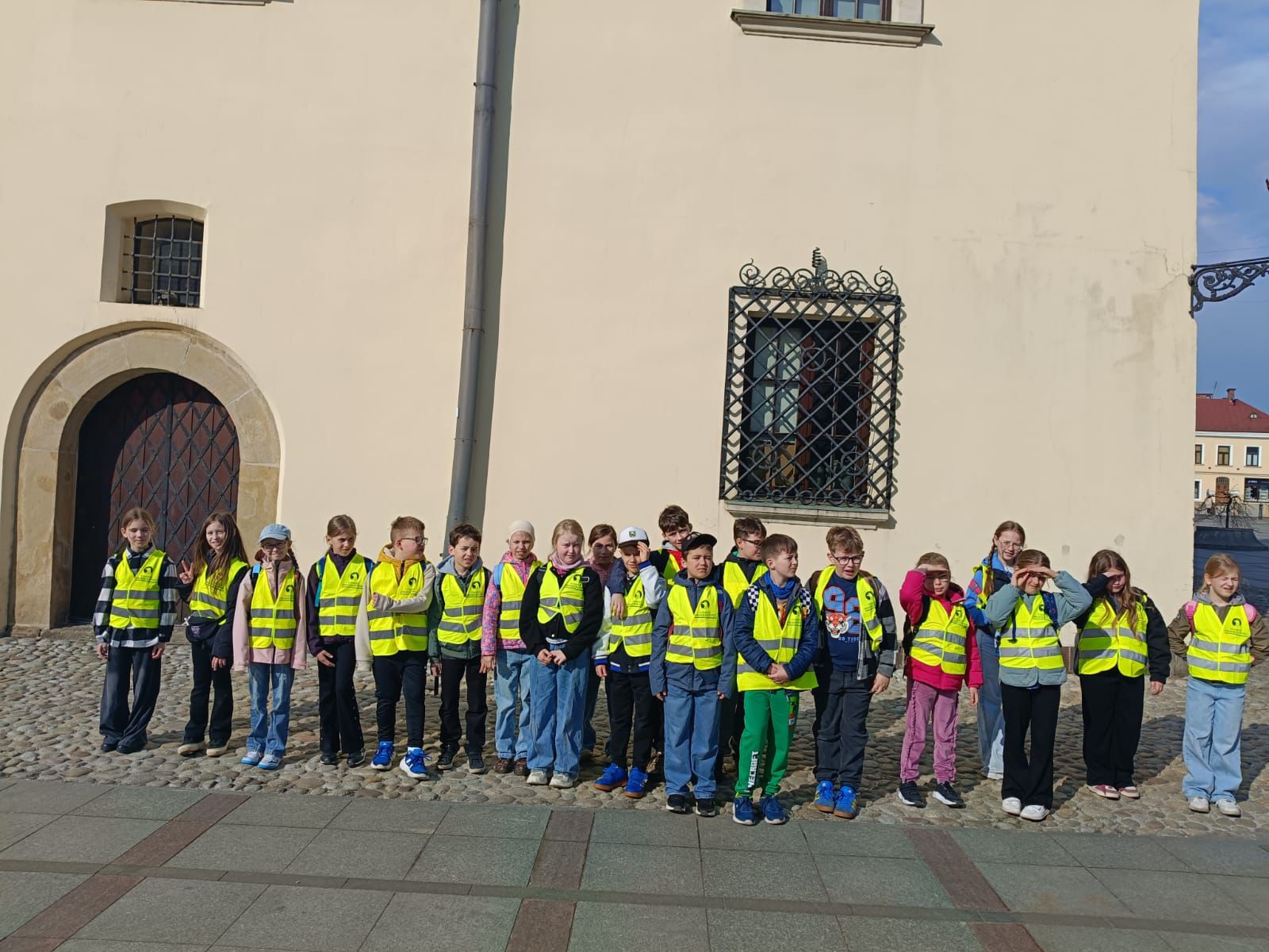 17 kwietnia 2026r. Klasa 3B wybrała się pociągiem na wycieczkę do Tarnowa. Po przyjeździe zwiedziliśmy piękny, zabytkowy Dworzec PKP, następnie udaliśmy się na spacer uliczkami Tarnowia. Po drodze wielką frajdę sprawiało nam szukanie słynnych Maszkaronów. W promieniach słońca dotarliśmy do Rynku i Ratusza. Udaliśmy się więc na wieżę, z której oglądaliśmy szeroką panoramę okolicy Tarnowa i zwiedziliśmy stałe wystawy w Muzeum. Po ciekawej lekcji historii przeszliśmy do teatru na zaplanowane przedstawienie „Przygody 10 skarpetek”. Autorzy w nowatorski sposób wcielili się w bohaterów książki, a towarzyszyła im nowoczesna muzyka. Na koniec wszyscy bili gromkie brawa. Wróciliśmy zmęczeni, ale szczęśliwi, a na stacji czekali na nas Kochani Rodzice.