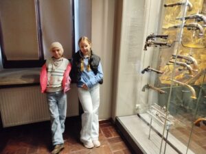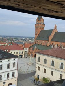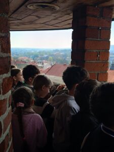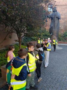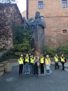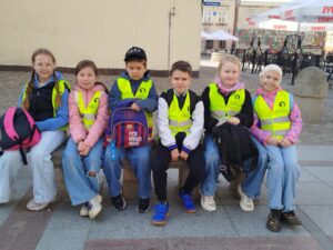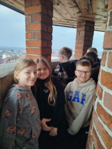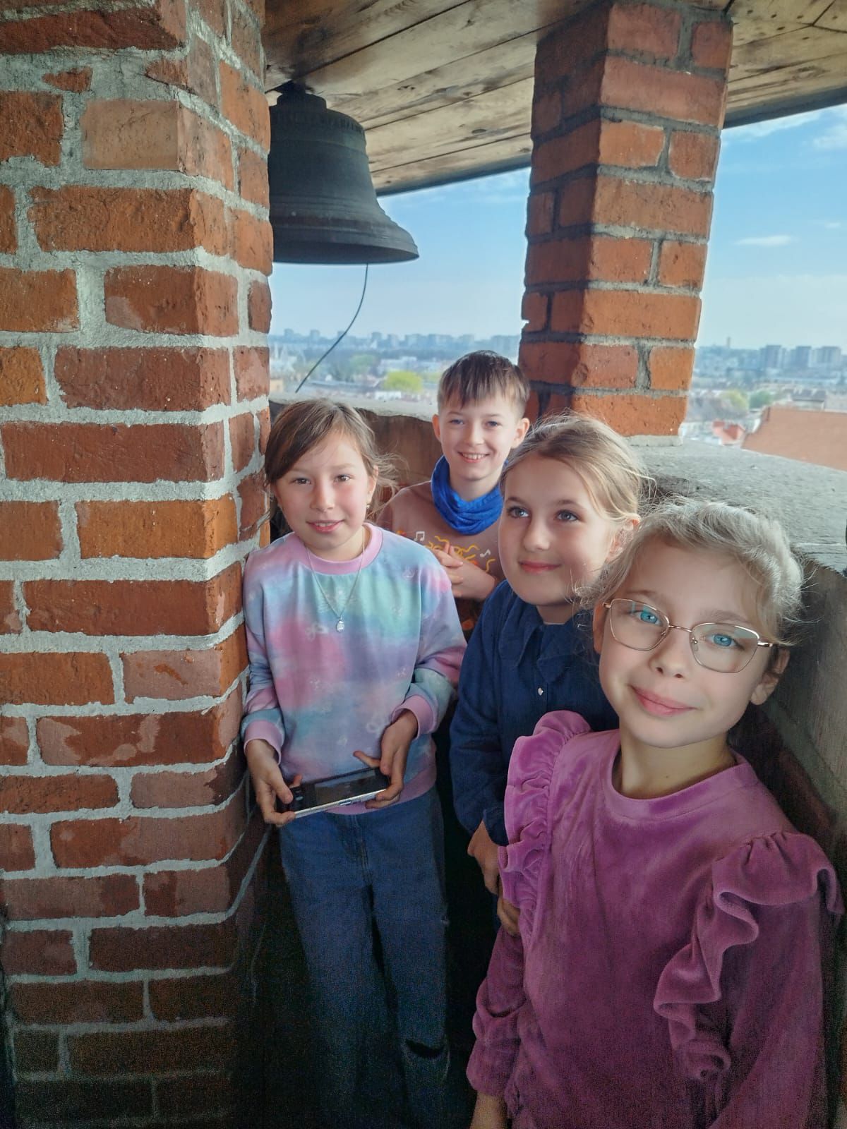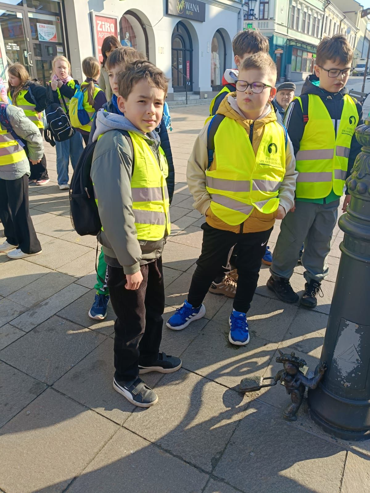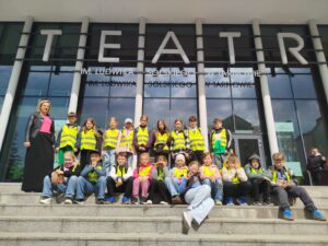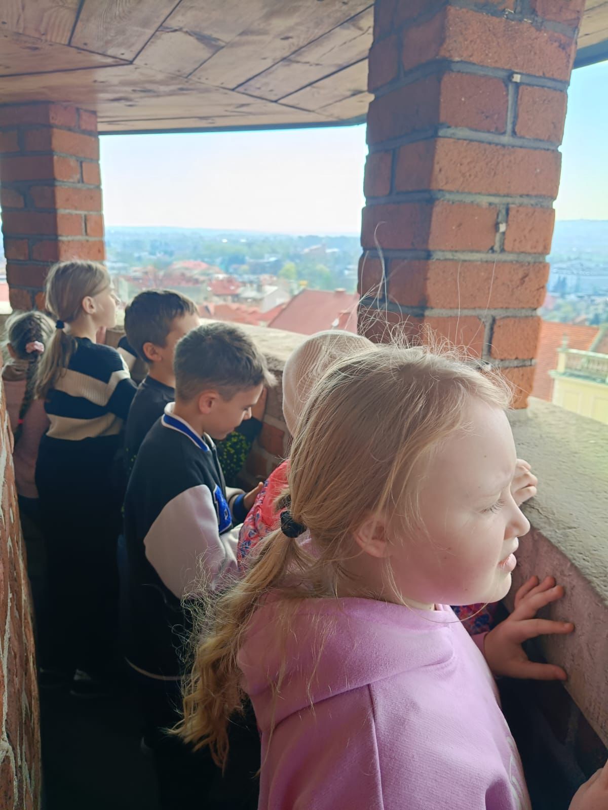 17 kwietnia 2026r. Klasa 3B wybrała się pociągiem na wycieczkę do Tarnowa. Po przyjeździe zwiedziliśmy piękny, zabytkowy Dworzec PKP, następnie udaliśmy się na spacer uliczkami Tarnowia. Po drodze wielką frajdę sprawiało nam szukanie słynnych Maszkaronów. W promieniach słońca dotarliśmy do Rynku i Ratusza. Udaliśmy się więc na wieżę, z której oglądaliśmy szeroką panoramę okolicy Tarnowa i zwiedziliśmy stałe wystawy w Muzeum. Po ciekawej lekcji historii przeszliśmy do teatru na zaplanowane przedstawienie „Przygody 10 skarpetek”. Autorzy w nowatorski sposób wcielili się w bohaterów książki, a towarzyszyła im nowoczesna muzyka. Na koniec wszyscy bili gromkie brawa. Wróciliśmy zmęczeni, ale szczęśliwi, a na stacji czekali na nas Kochani Rodzice.