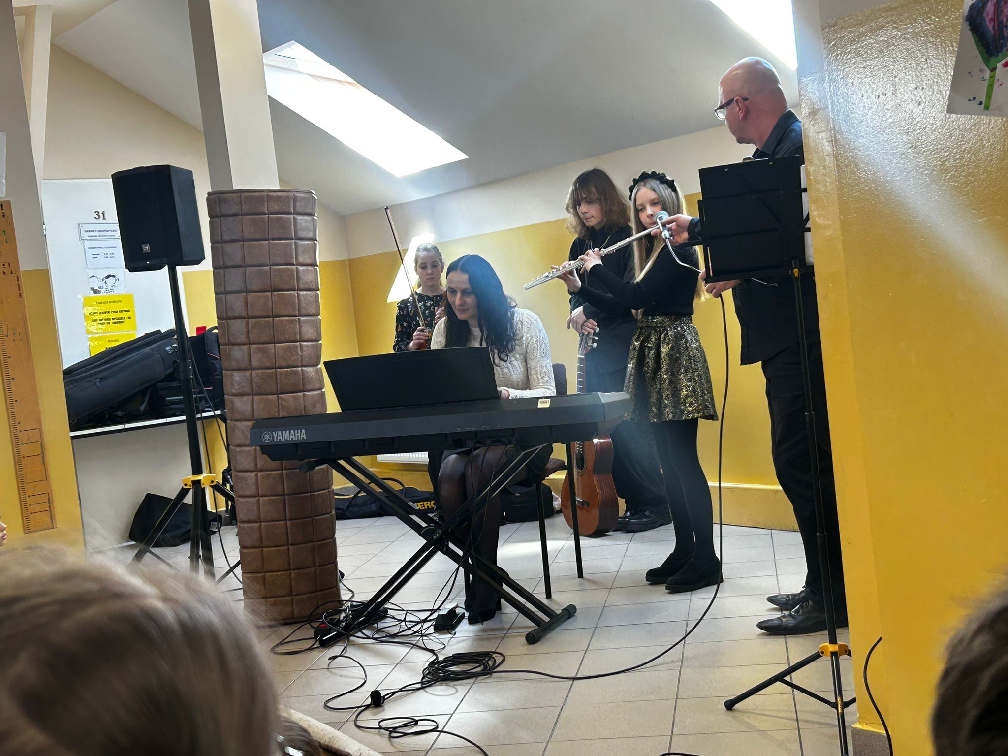 Największym zainteresowaniem cieszyła się część artystyczna spotkania. Uczniowie mogli wysłuchać krótkich prezentacji muzycznych w wykonaniu młodych artystów oraz nauczycieli. Zaprezentowano różne instrumenty, m.in. skrzypce, flet poprzeczny, gitarę oraz instrumenty dęte, co pozwoliło dzieciom lepiej poznać ich brzmienie i możliwości.